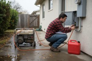 Tier 3 (3–7 days): A large portable generator (5,000–10,000 watts) or a home battery system like the Tesla Powerwall covers extended outages. For generators, a manual transfer switch or interlock kit is legally required in most jurisdictions to prevent backfeed onto utility lines. NEMA recommends keeping enough fuel on hand for at least 48 hours of operation as a baseline.